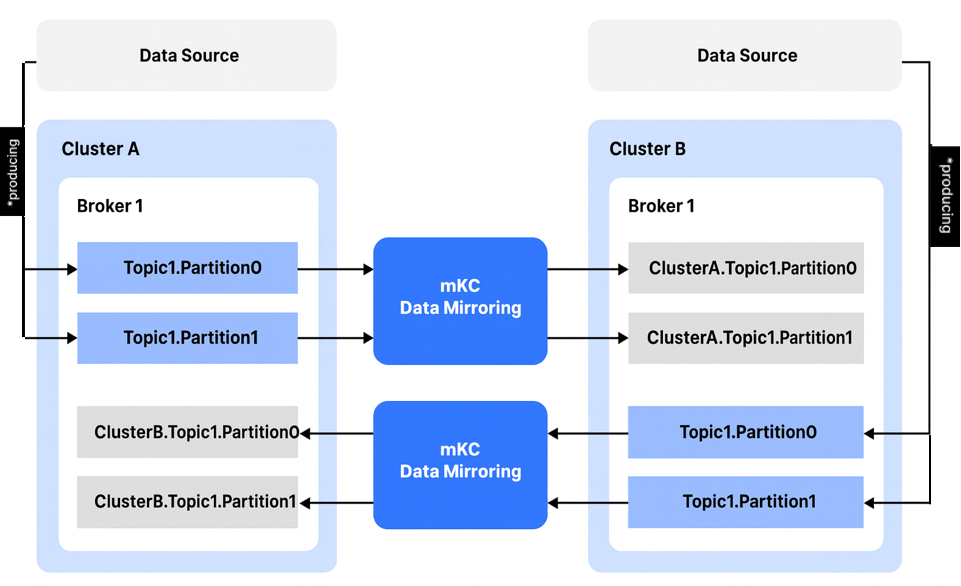 - Source Cluster : The original Kafka cluster that provides data in a data mirroring job.