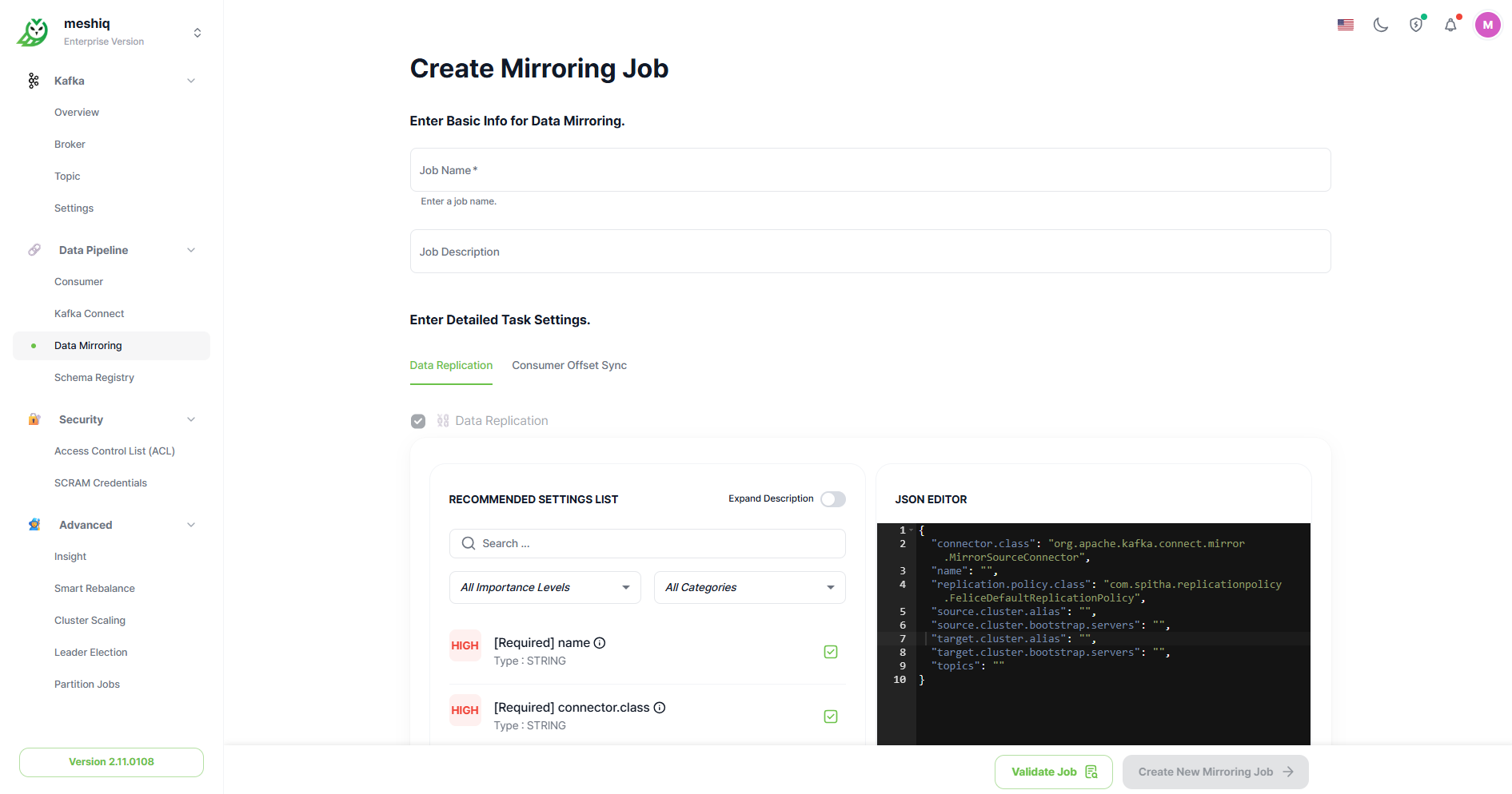 This is basic information about the mirroring job. Enter the Job Name and Job Description.