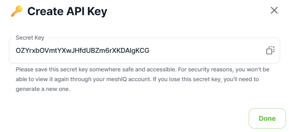You can only view the issued API Key once. Make sure to copy and save this secret key somewhere safe and accessible.