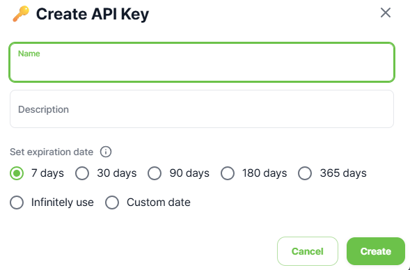 - API Key is a secret key issued per user and should be kept confidential. Do not share it with others or expose it in the client code.